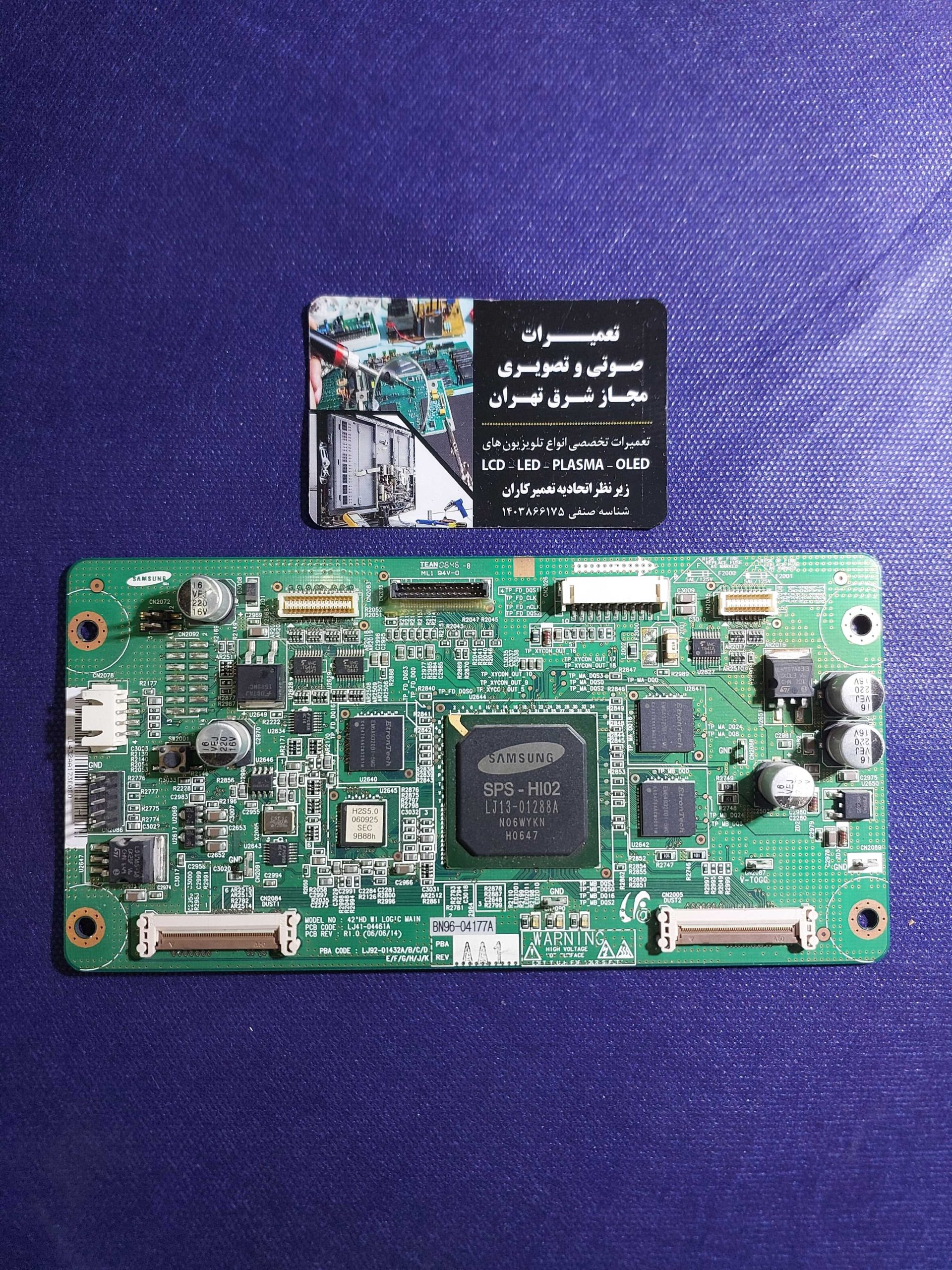 تیکان تلویزیون PS42Q7 یکی از قطعات اصلی در مسیر نمایش تصویر این تلویزیون 42 اینچ پلاسما محسوب میشود. برد T-CON (Timing Controller) وظیفه کنترل، زمانبندی و انتقال دقیق سیگنالهای تصویری از برد مین به پنل را بر عهده دارد. هرگونه نقص در عملکرد این برد میتواند باعث ایجاد اختلال جدی در تصویر شود، حتی زمانی که صدا بهدرستی پخش میشود.